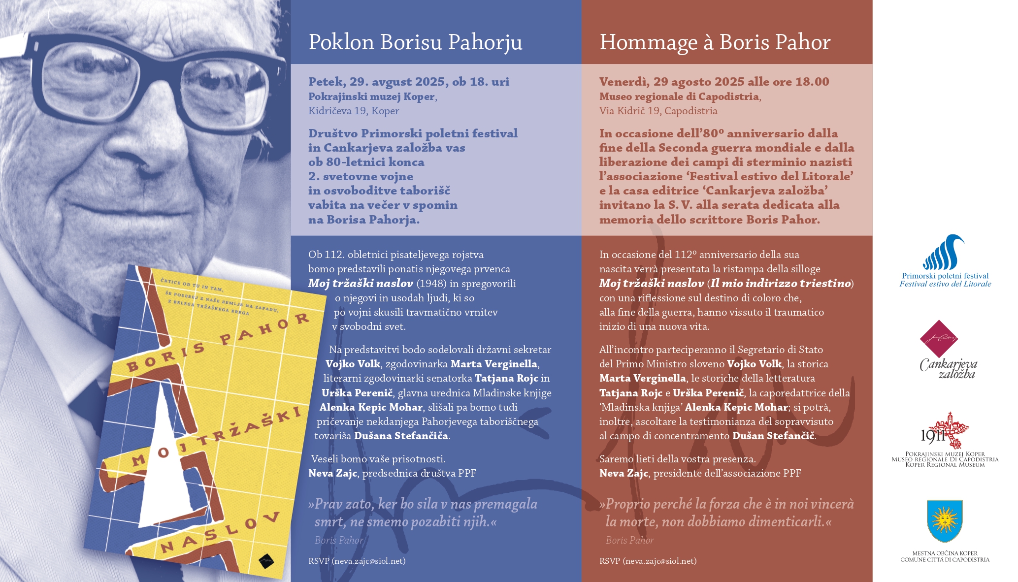 Ob 112. obletnici pisateljevega rojstva bo predstavljen ponatis njegovega prvenca Moj tržaški naslov (1948) in spregovorili bomo o njegovi in usodah ljudi, ki so po vojni skusili travmatično vrnitev v svobodni svet.